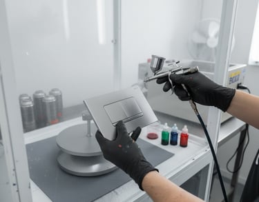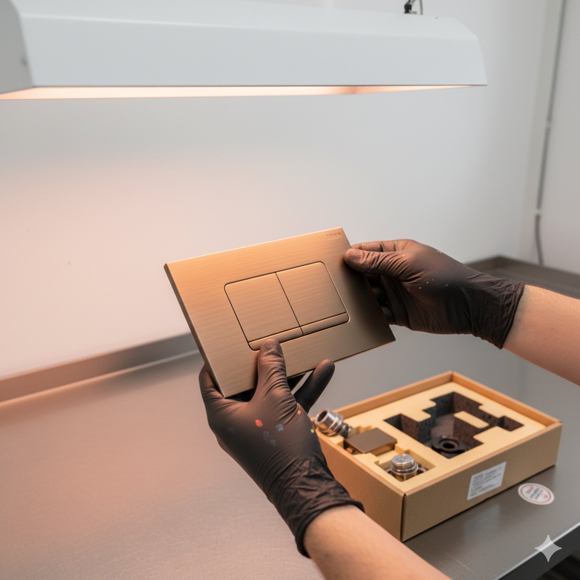 The initial stage involves a thorough review of the component, which may be a flush plate or any other accessory. We perform a detailed inspection and carry out gentle disassembly if required. This method is effective for primary materials such as ABS plastic, polished stainless steel, polished aluminium, and chrome-plated metal.